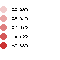 Durch Mausklick auf die gewünschte Partei wird der Stimmenanteil in Prozent durch farbliche Abstufung in der Karte dargestellt.