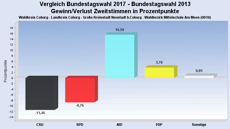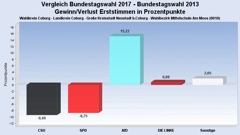 | Partei | Zweitstimmen 2017 | Prozent 2017 | Zweitstimmen 2013 | Prozent 2013 | |