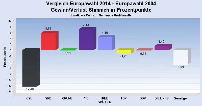 | Partei | Stimmen 2014 | Prozent 2014 | Stimmen 2004 | Prozent 2004 | |