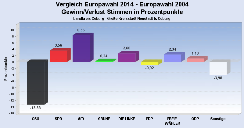 | Partei | Stimmen 2014 | Prozent 2014 | Stimmen 2004 | Prozent 2004 | |