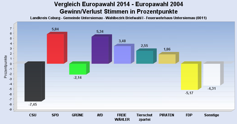 | Partei | Stimmen 2014 | Prozent 2014 | Stimmen 2004 | Prozent 2004 | |