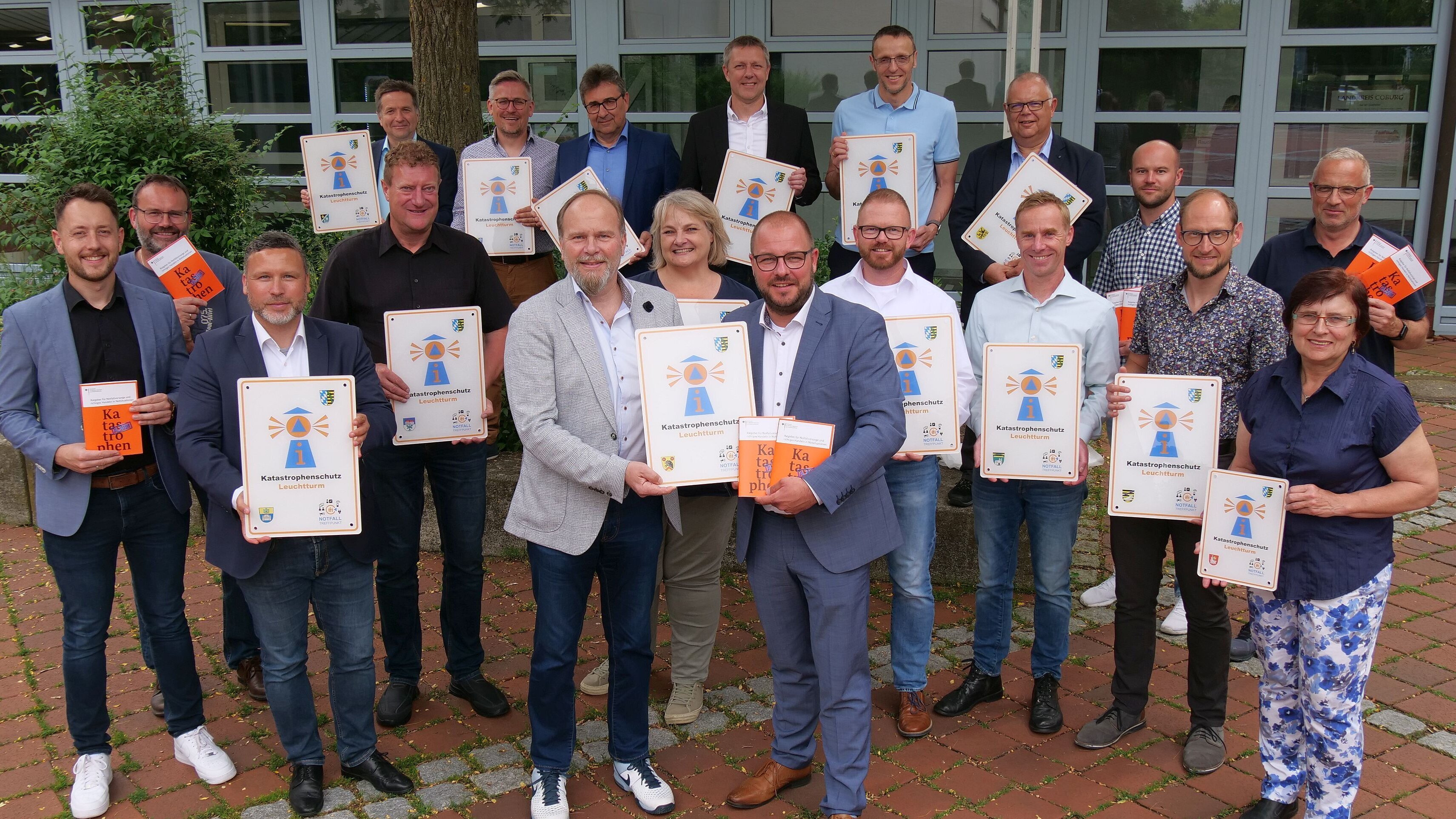 Der Landkreis Coburg hat ein wichtiges Konzept im Katastrophenschutz auf den Weg gebracht. In nahezu allen Städten und Gemeinden des Landkreises sollen noch in diesem Jahr einheitlich beschilderte „Katastrophenschutz-Leuchttürme“ zur Verfügung stehen. Dabei handelt es sich um zentral gelegene Anlaufpunkte, bei denen die Bevölkerung im Falle einer Krise oder gar einem Katastrophenfall Hilfe und Informationen erhält. Im Vorfeld der Sitzung des Coburger Kreistags ist am Donnerstag die offizielle Beschilderung an die teilnehmenden Kommunen verteilt worden.